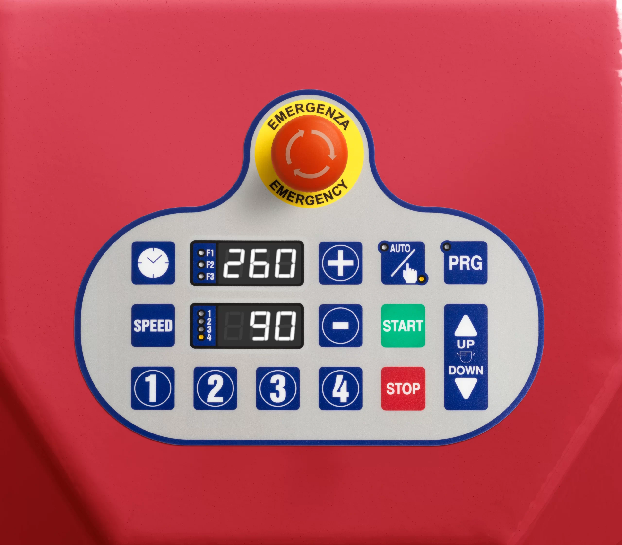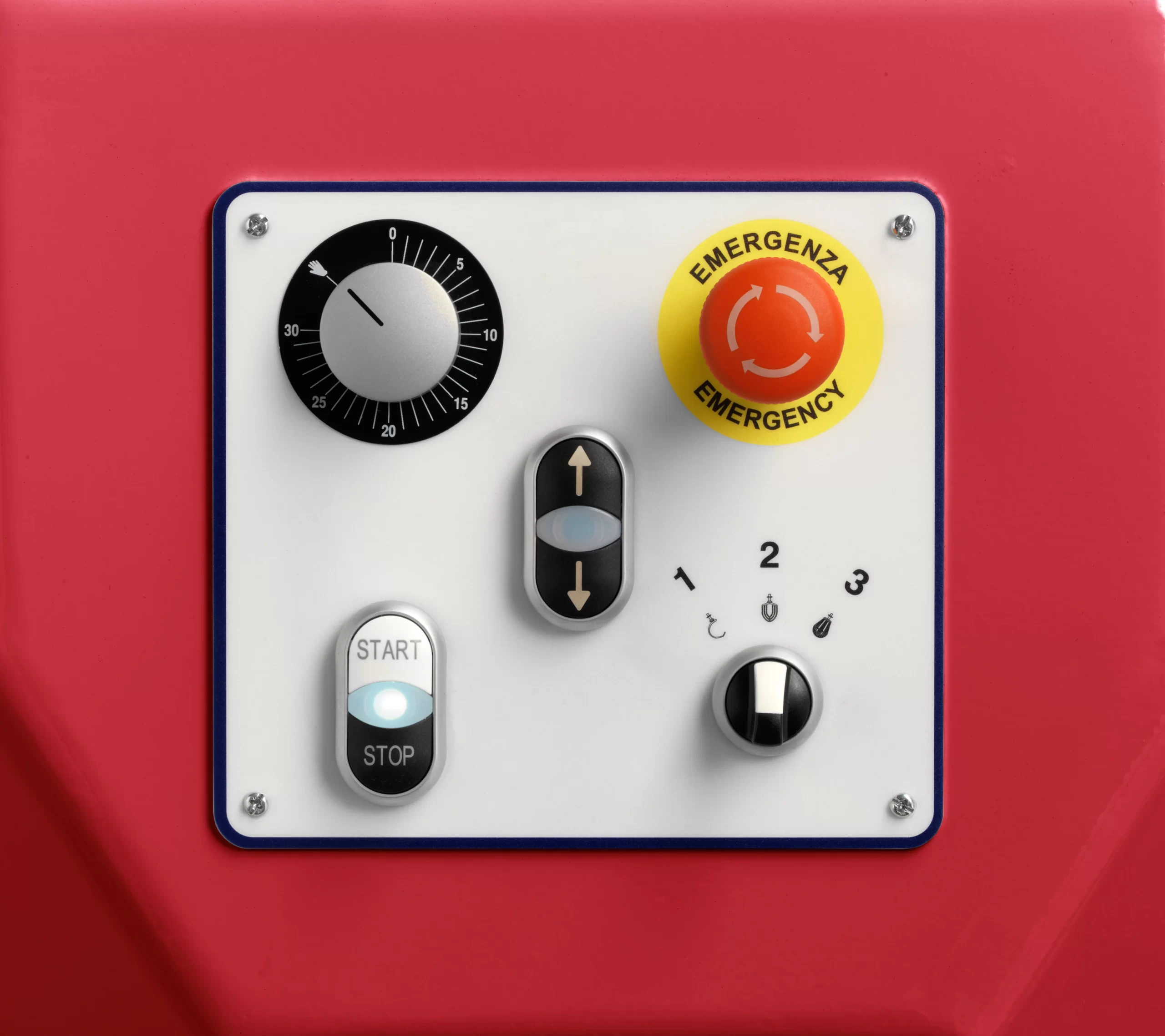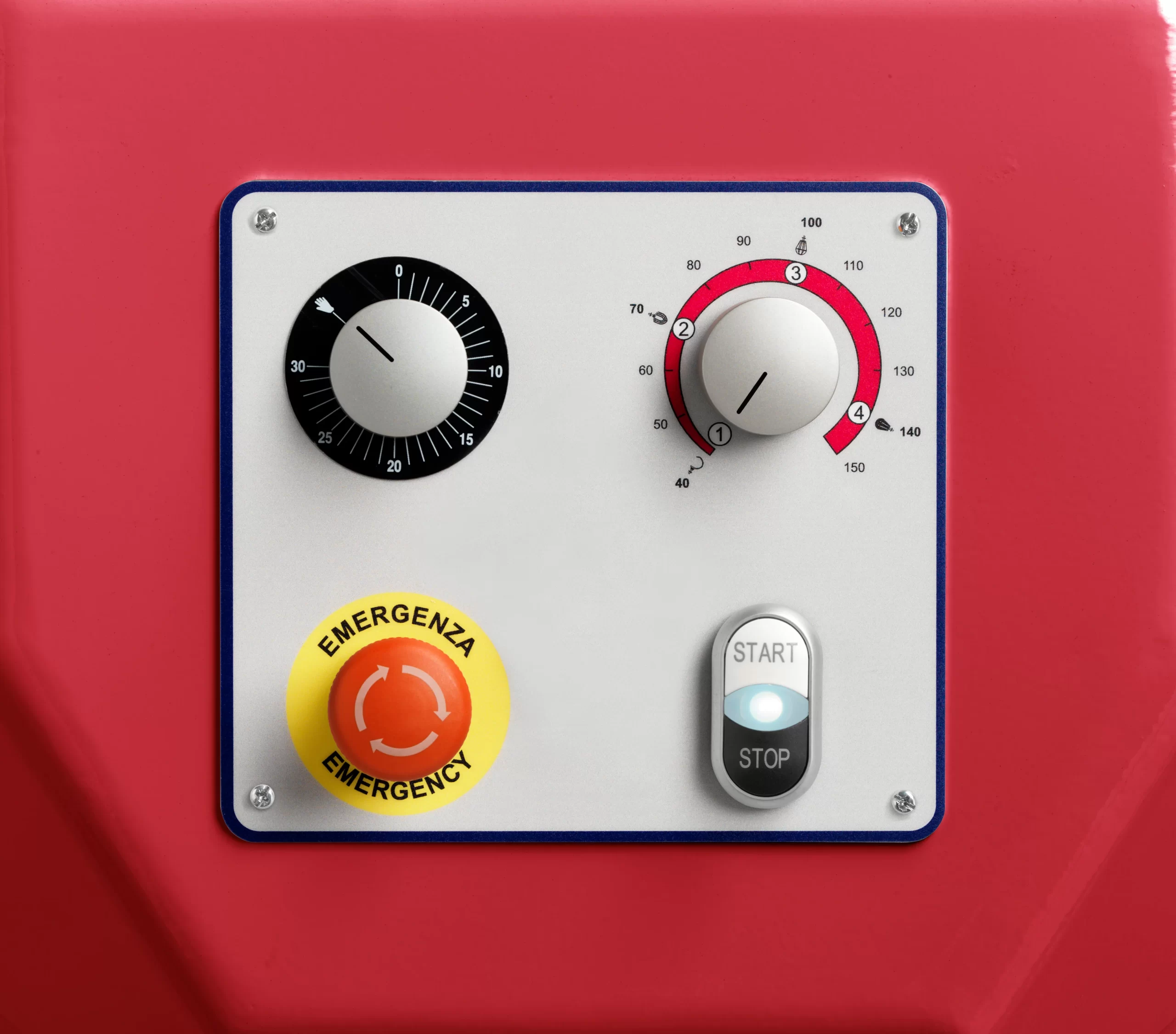 Τα εργαλεία και η σχάρα είναι από ανοξείδωτο χάλυβα AISI 304, κατάλληλα για επαφή με τρόφιμα. Στερεό και λίγο θορυβώδες, κατάλληλο για μικρά και μεσαία εργαστήρια για την παραγωγή ζύμης και κρέμας διαφόρων τύπων, γλυκών ή αλμυρών.