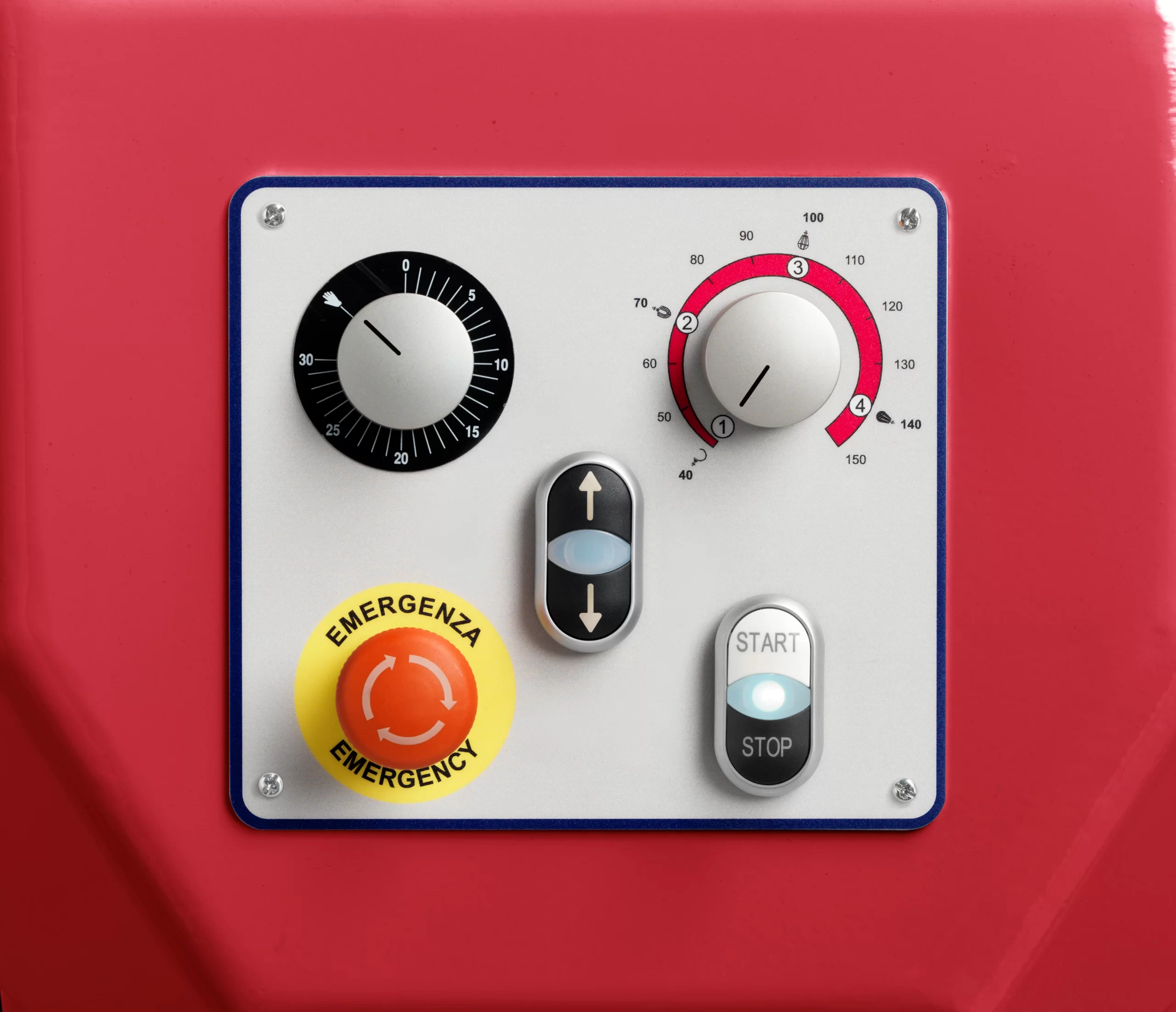 Η ανύψωση του μπολ μπορεί να είναι χειροκίνητη ή αυτόματη. Εύκολο στη χρήση και τον καθαρισμό, διαθέτει επίσης ρυθμιζόμενα πόδια, σε περίπτωση που το δάπεδο είναι ανώμαλο.